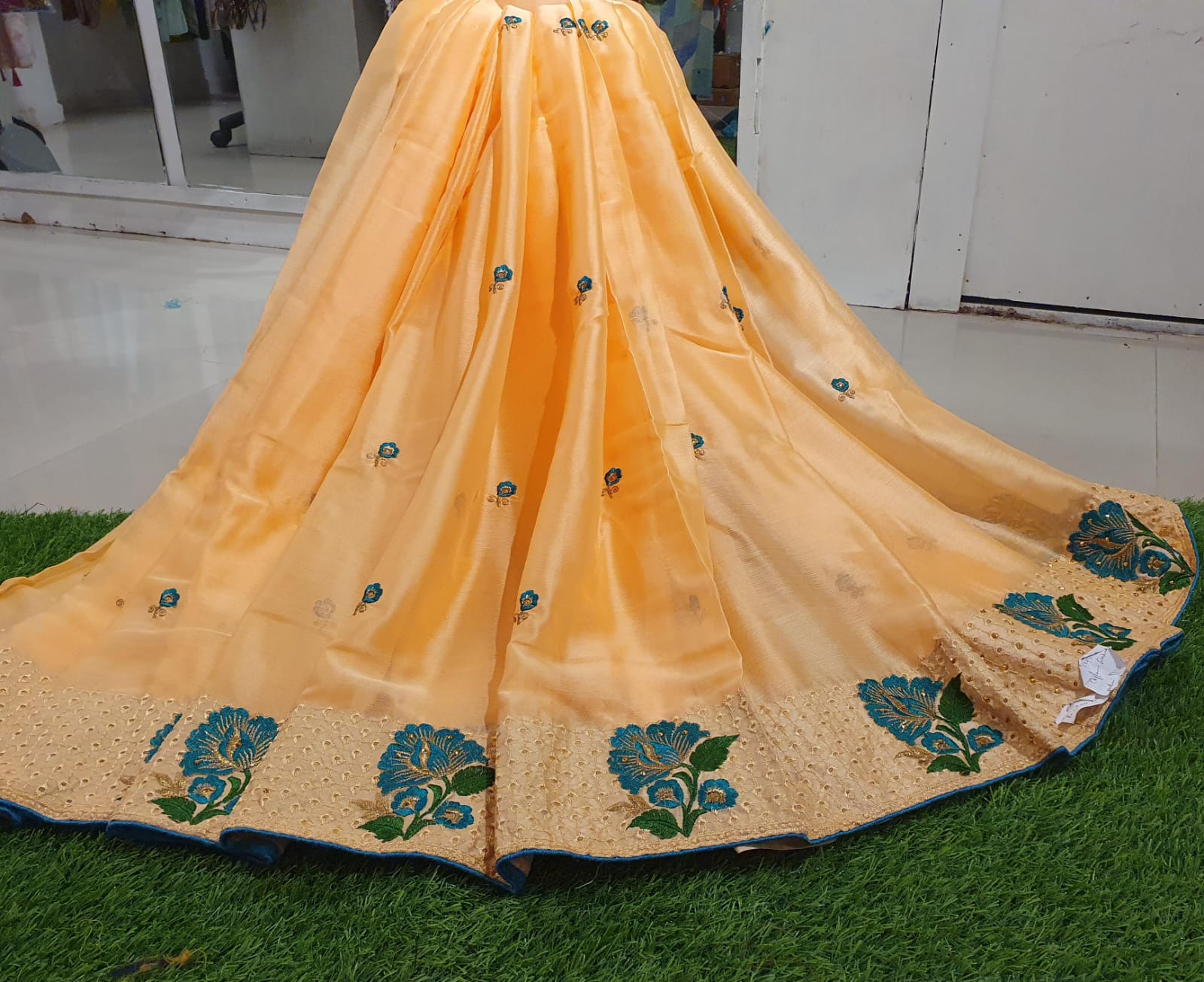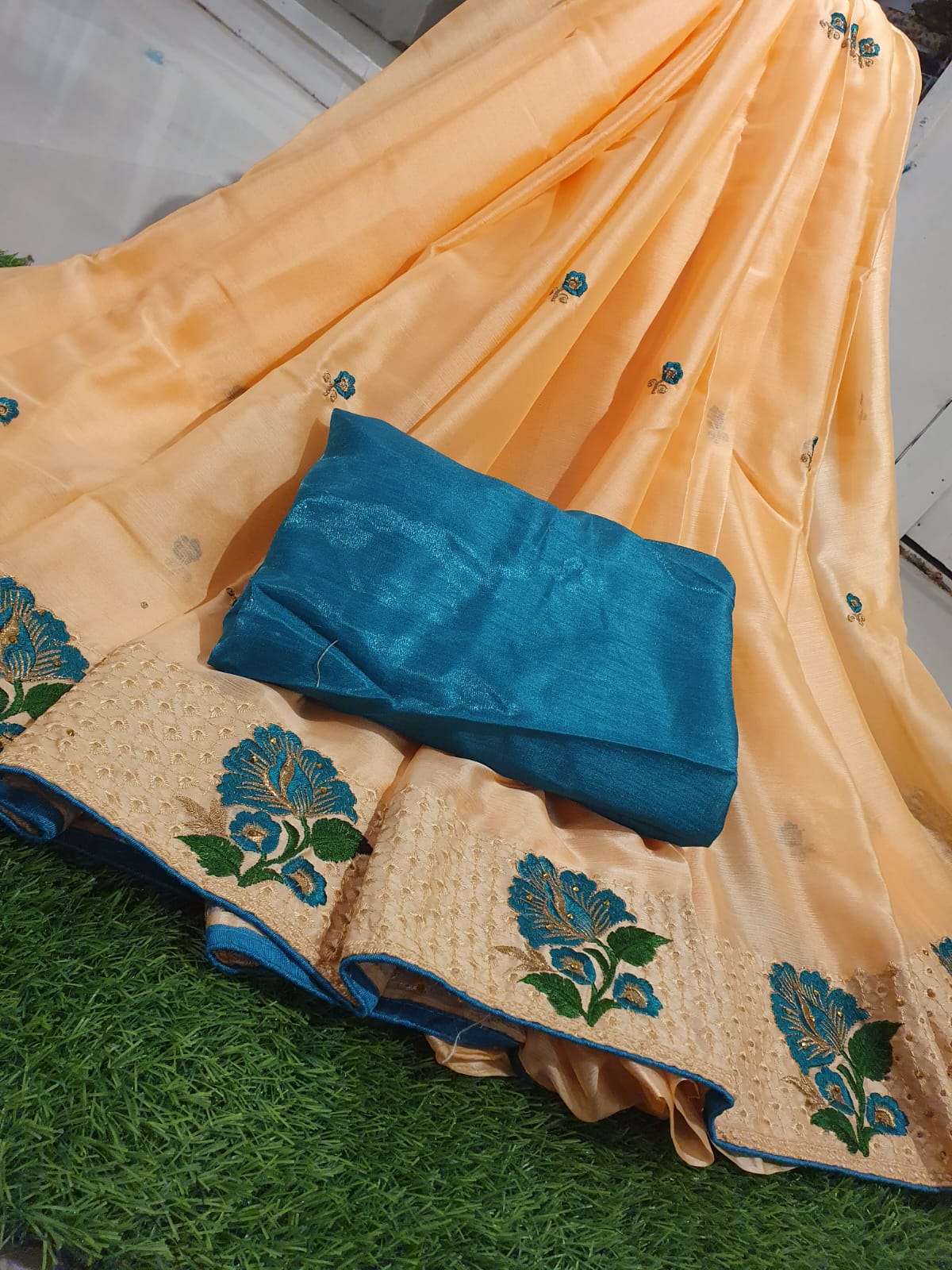 Beautiful Chiffon with Embroidery work & Contrast Blouse