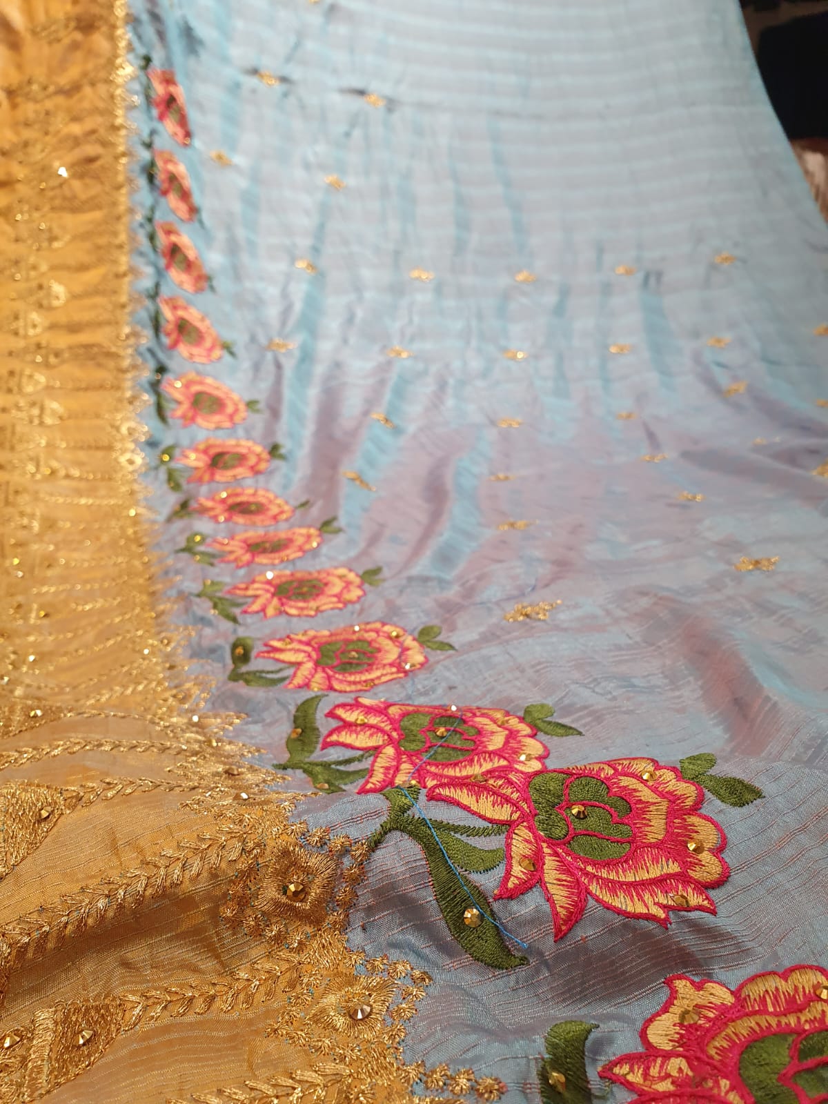 Fancy Silk with Embroidery Work in Full Saree & Sequence Work in Saree