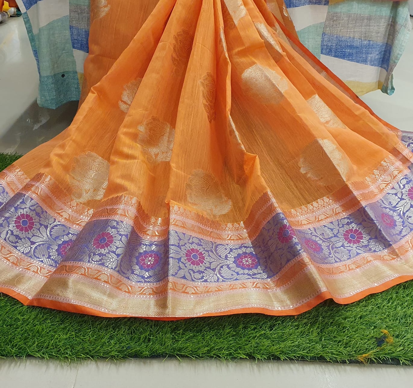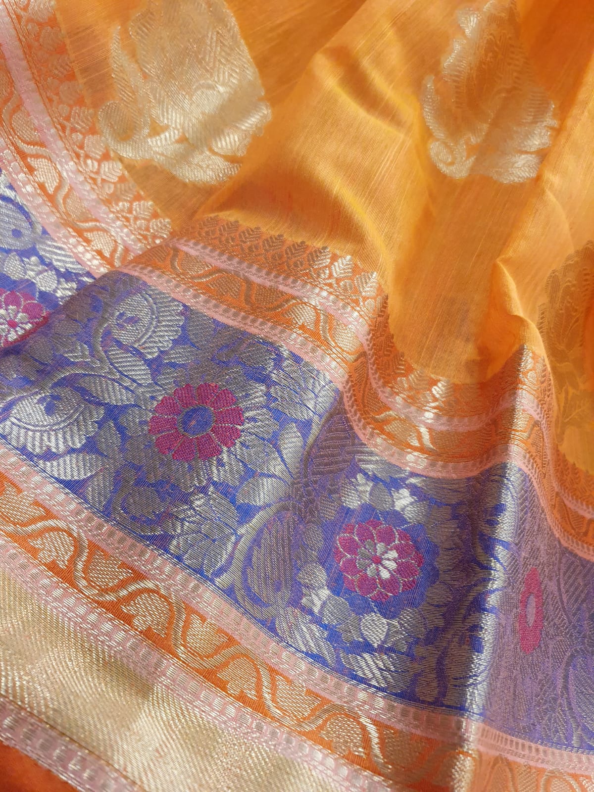 Floral Design Brasso Silk with Contrast Border with Contrast Blouse