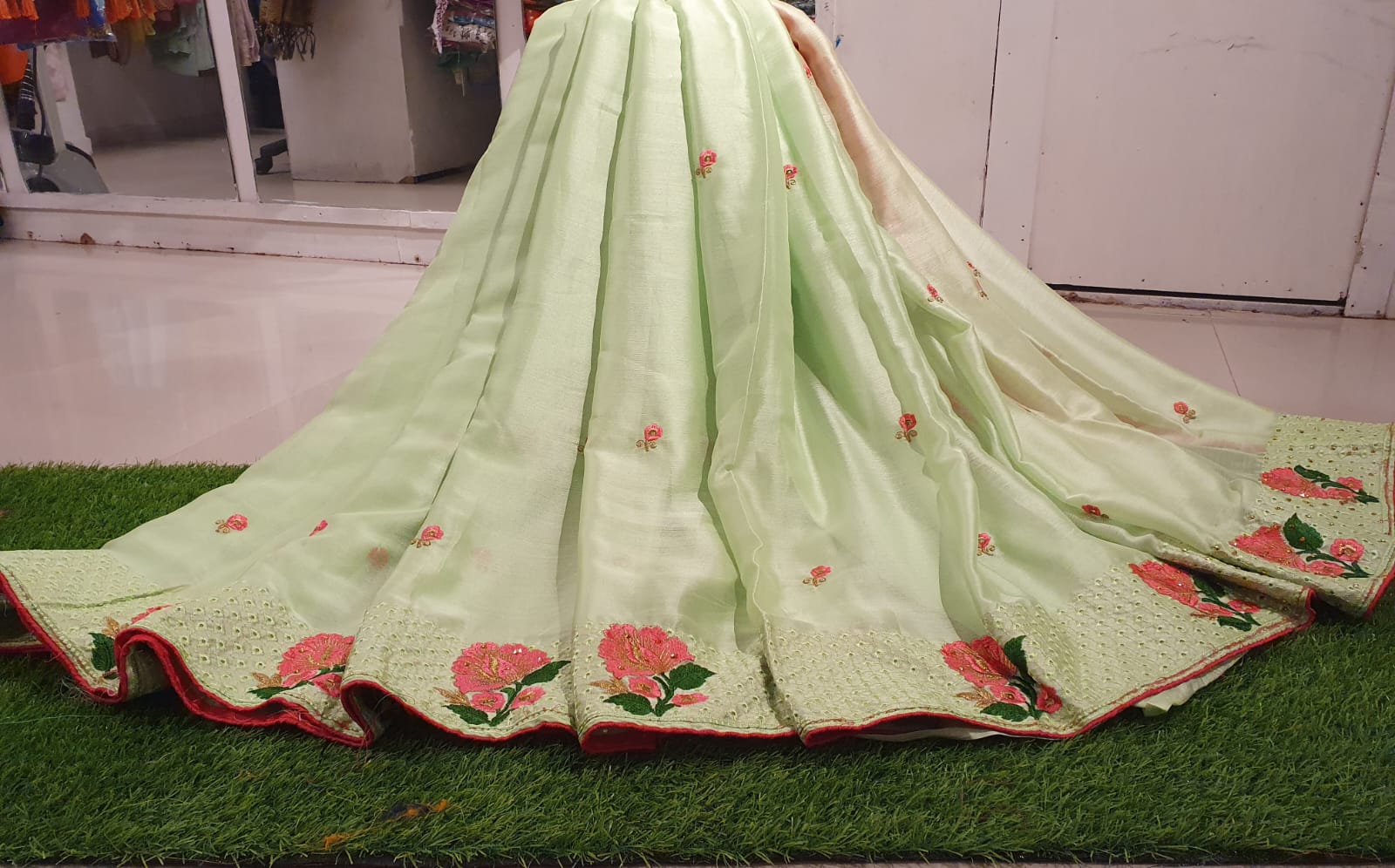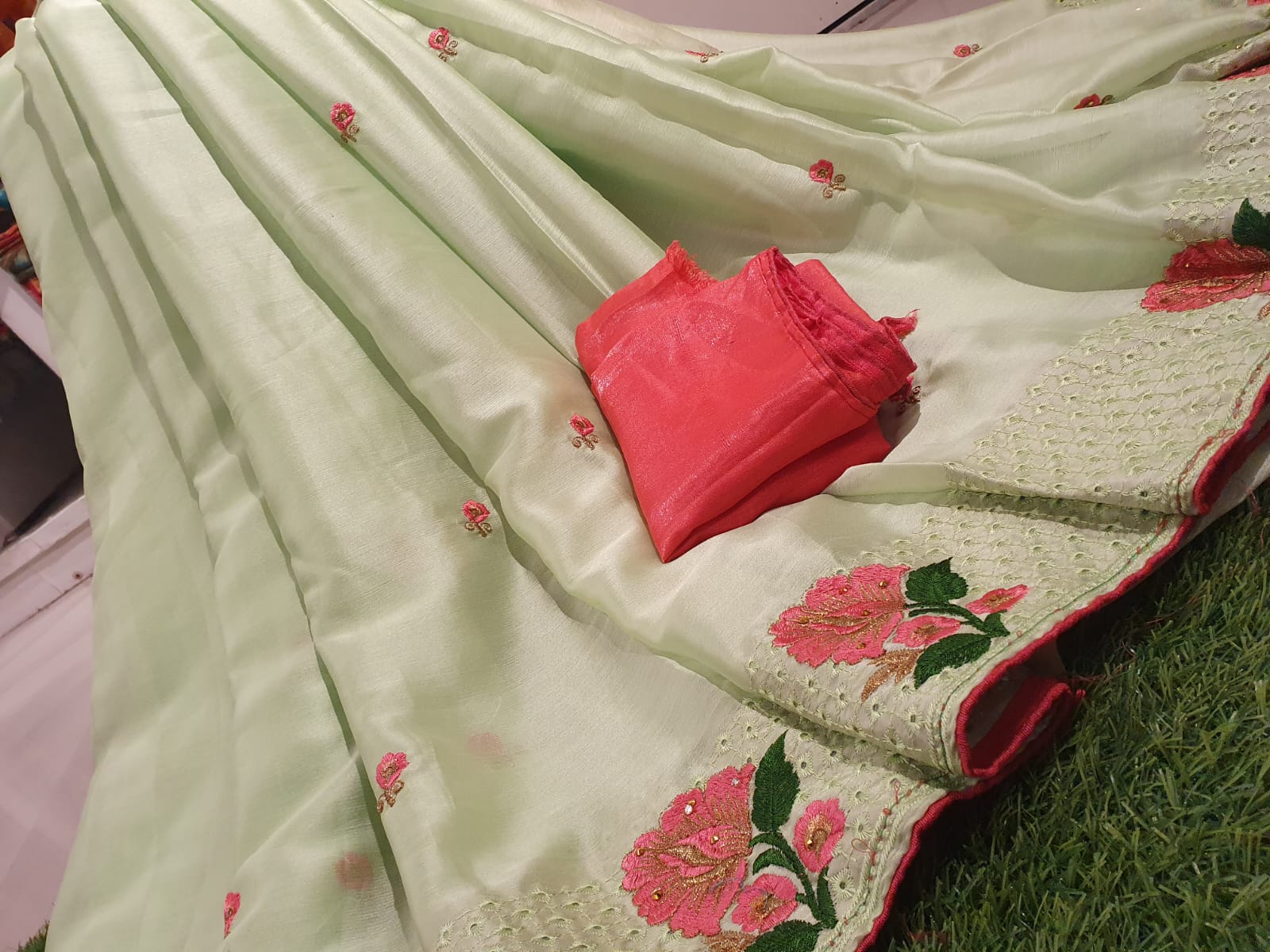 Beautiful Chiffon with embroidery work & contrast blouse
