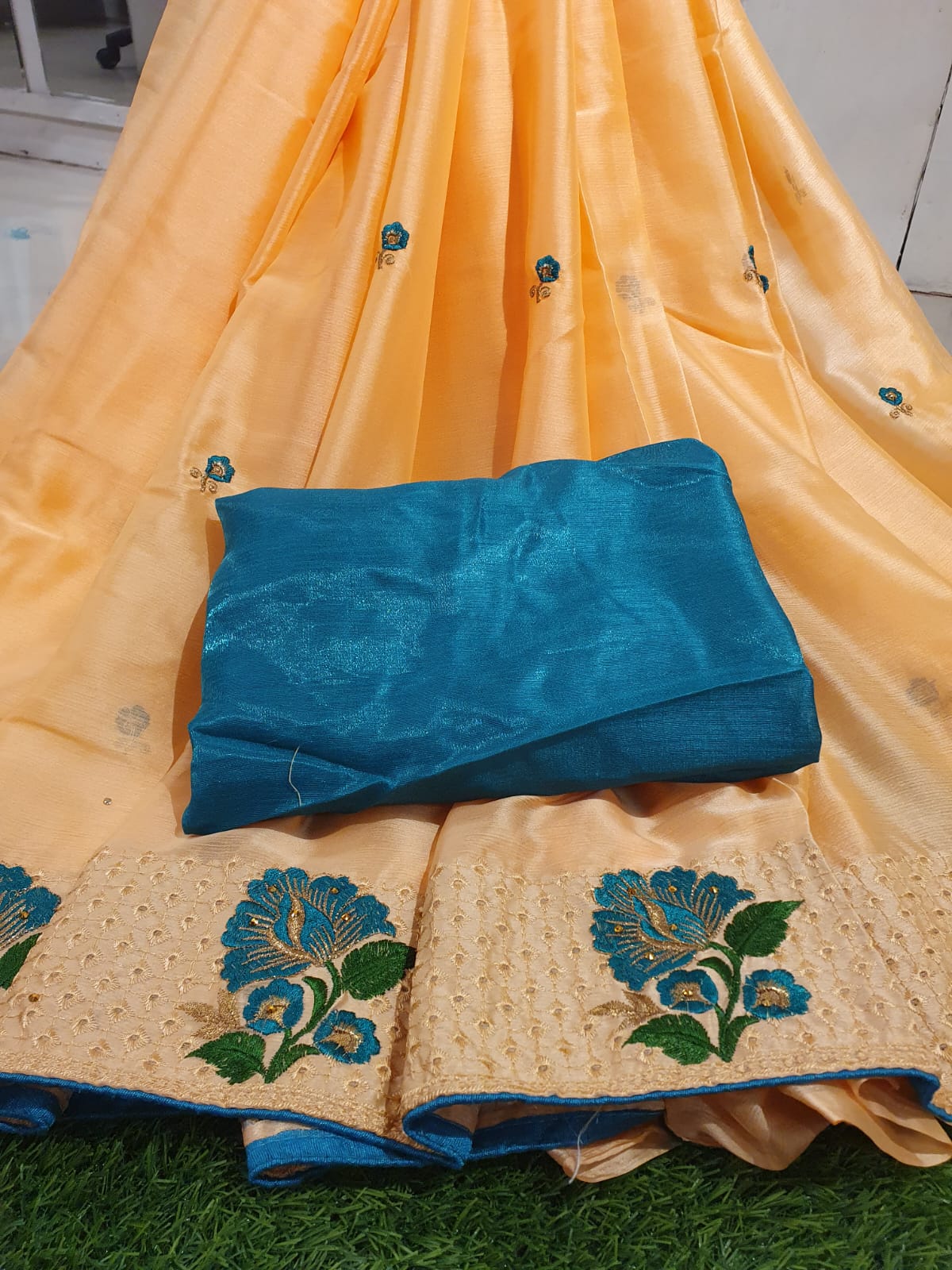 Beautiful Chiffon with Embroidery work & Contrast Blouse