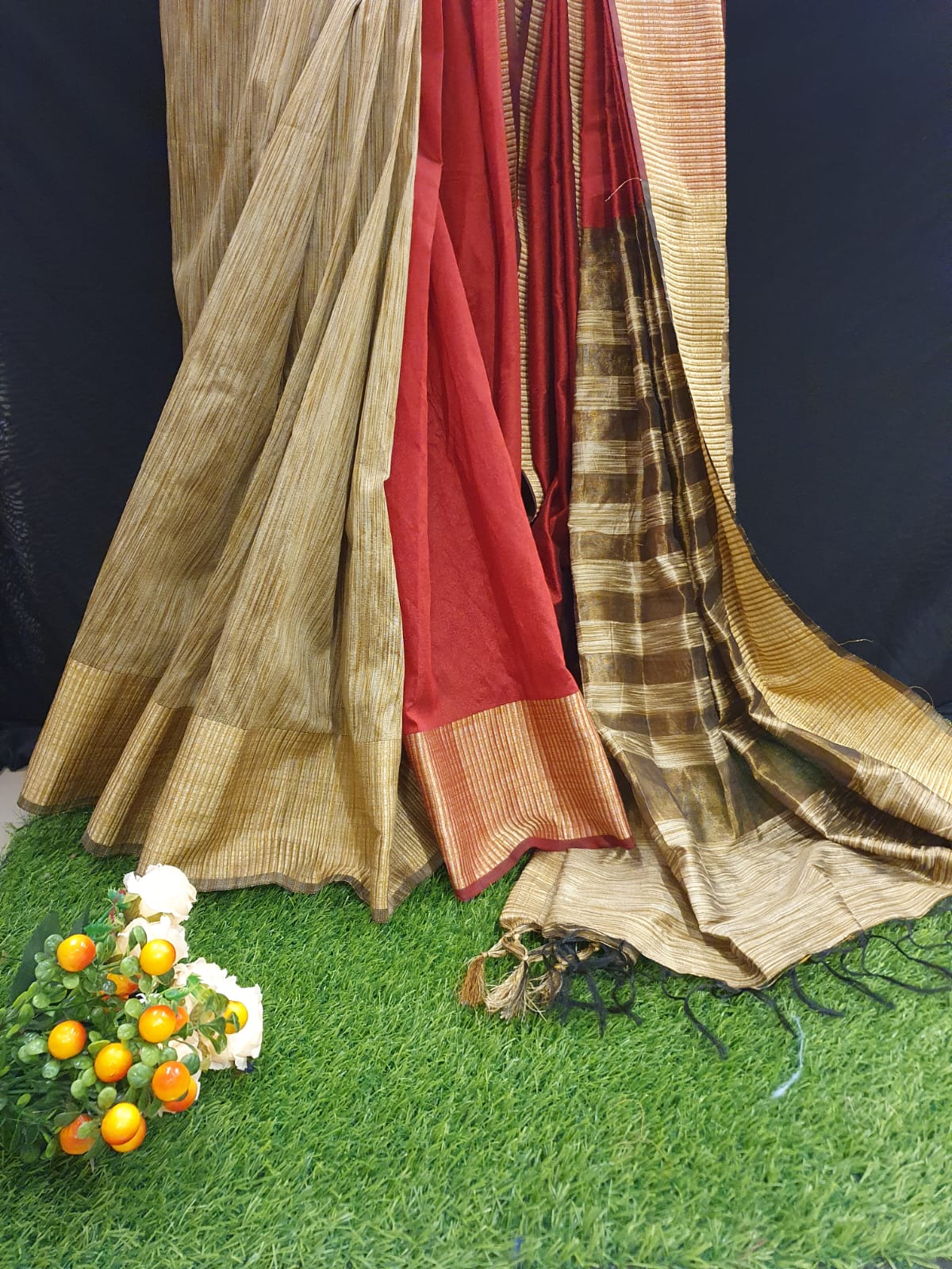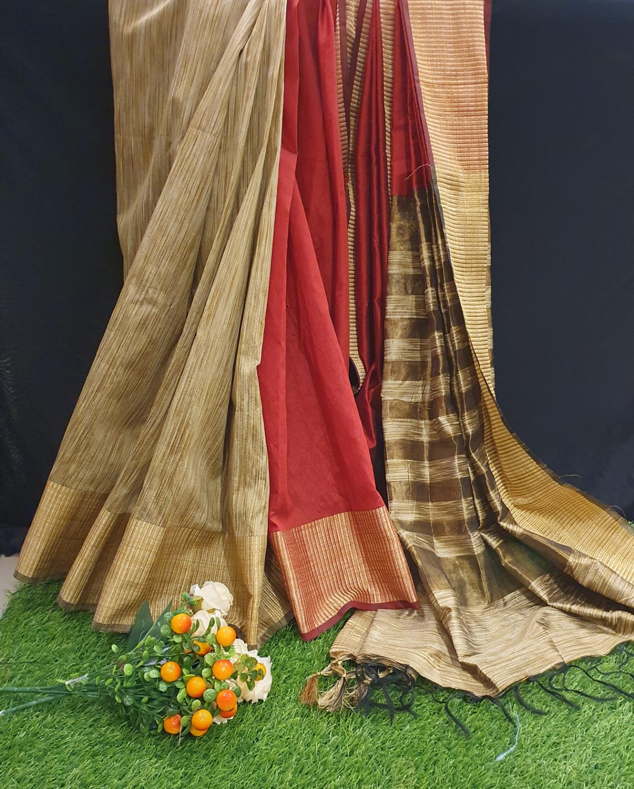 Partly fancy silk with contrast blouse